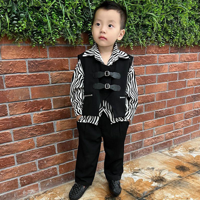 This stylish and comfortable outfit is perfect for any party or special event. The zebra patterned shirt adds a playful touch, while the black waistcoat adds a touch of sophistication.