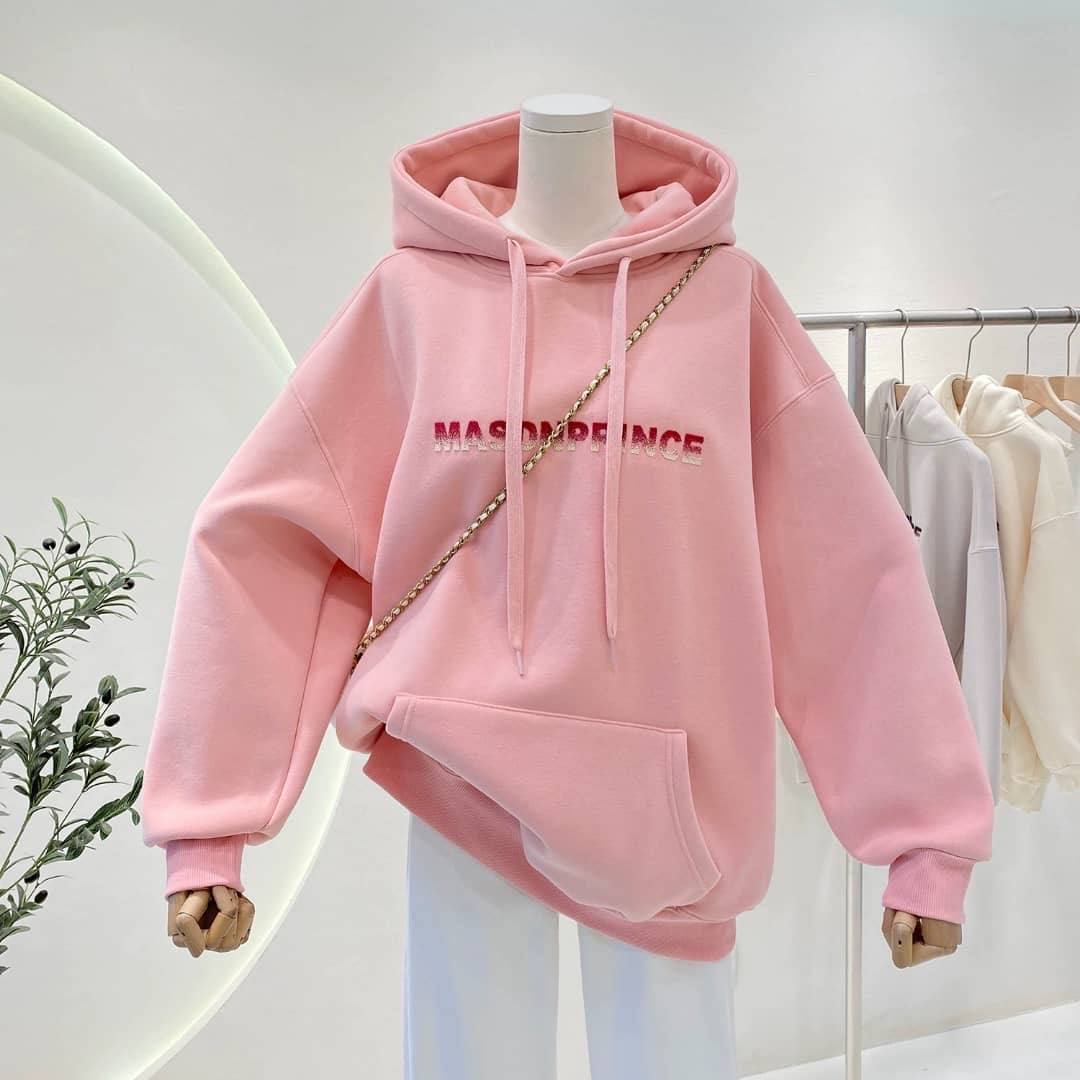 Stay comfy and stylish in this oversized pink hoodie featuring the embroidered Mason Prince logo. Perfect for casual days or layering.