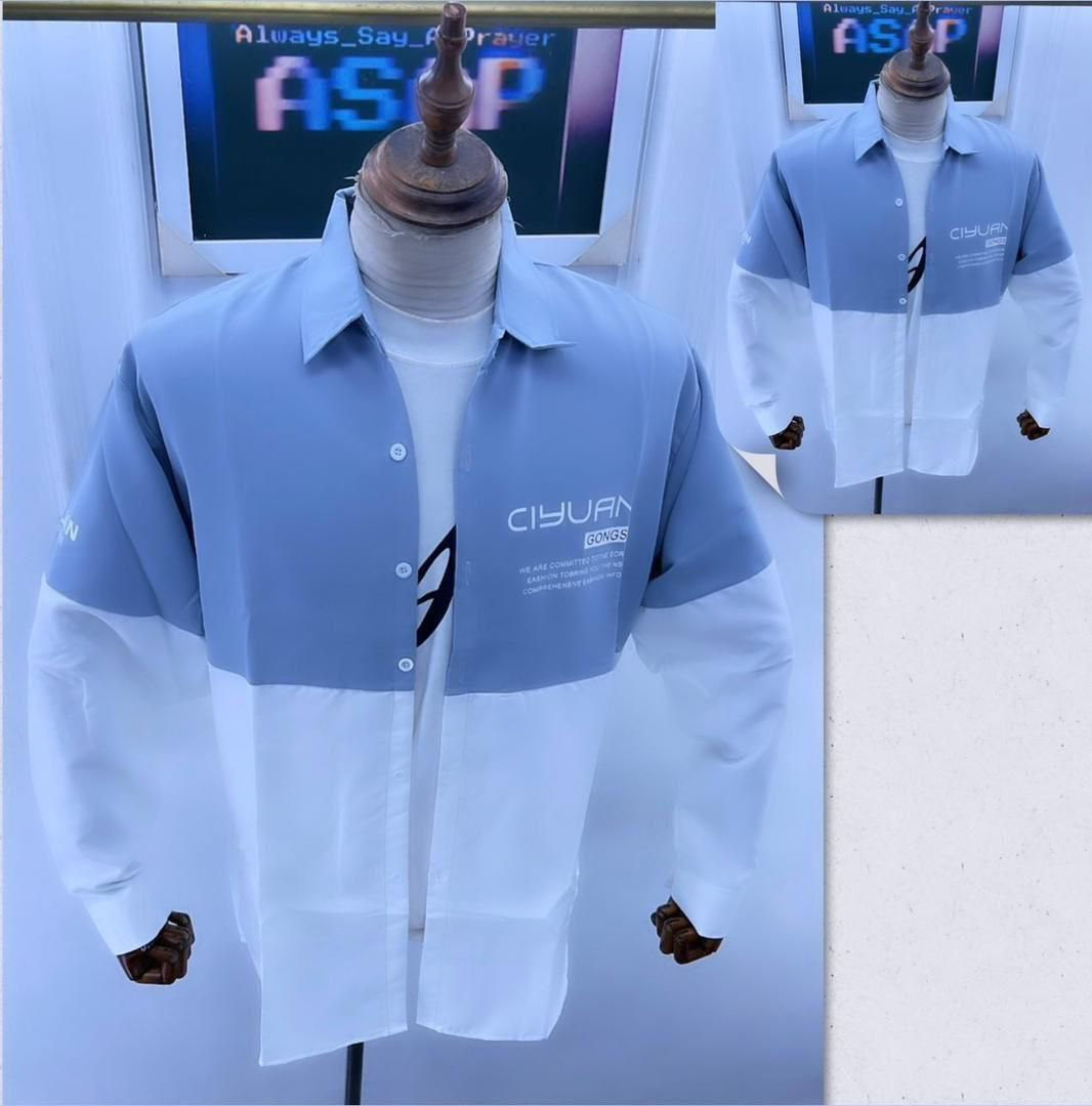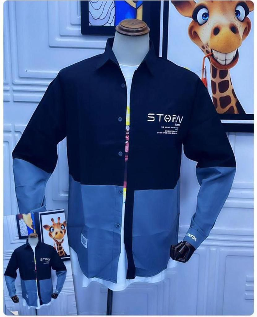 Upgrade your style with this trendy men's Storm color block shirt. Features a modern light blue and black design, long sleeves, and a comfortable fit perfect for casual outings or stepping out in style. Made with quality fabric for durability. Shop the latest men's fashion now. #MensFashion #ChemiseHomme #ColorBlockShirt #CameroonStyle #TrendyWear #StormShirt