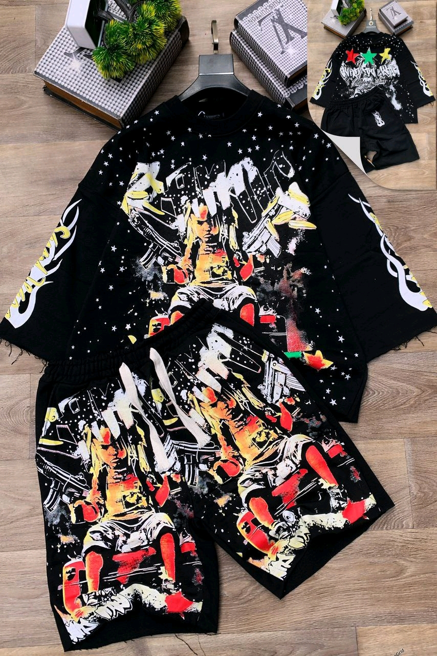 Step up your style with this trendy Men's Graphic Print T-Shirt and Shorts Set in White. Perfect for casual outings, this comfortable two-piece outfit features a bold, eye-catching design on both the oversized tee and matching shorts. Made with comfortable fabric for all-day wear. Ideal for looking fresh and stylish. Get yours now! #MensFashionCameroon #StreetwearCM #OutfitHomme #DoualaStyle #YaoundeFashion #EnsembleHomme #ModeCameroun