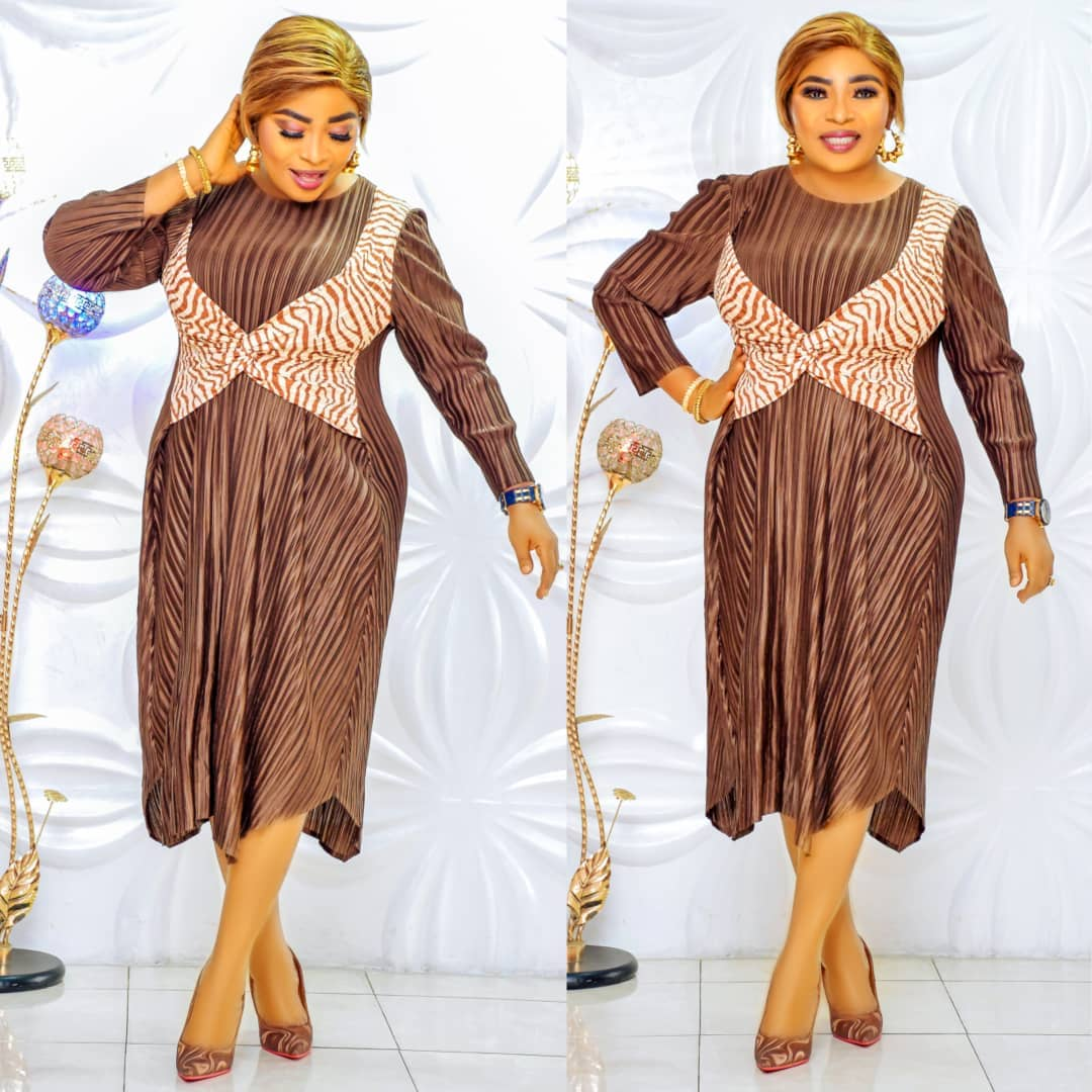 Buy Elegant Brown Pleated Midi Dress in Douala, Cameroon sold by VERA