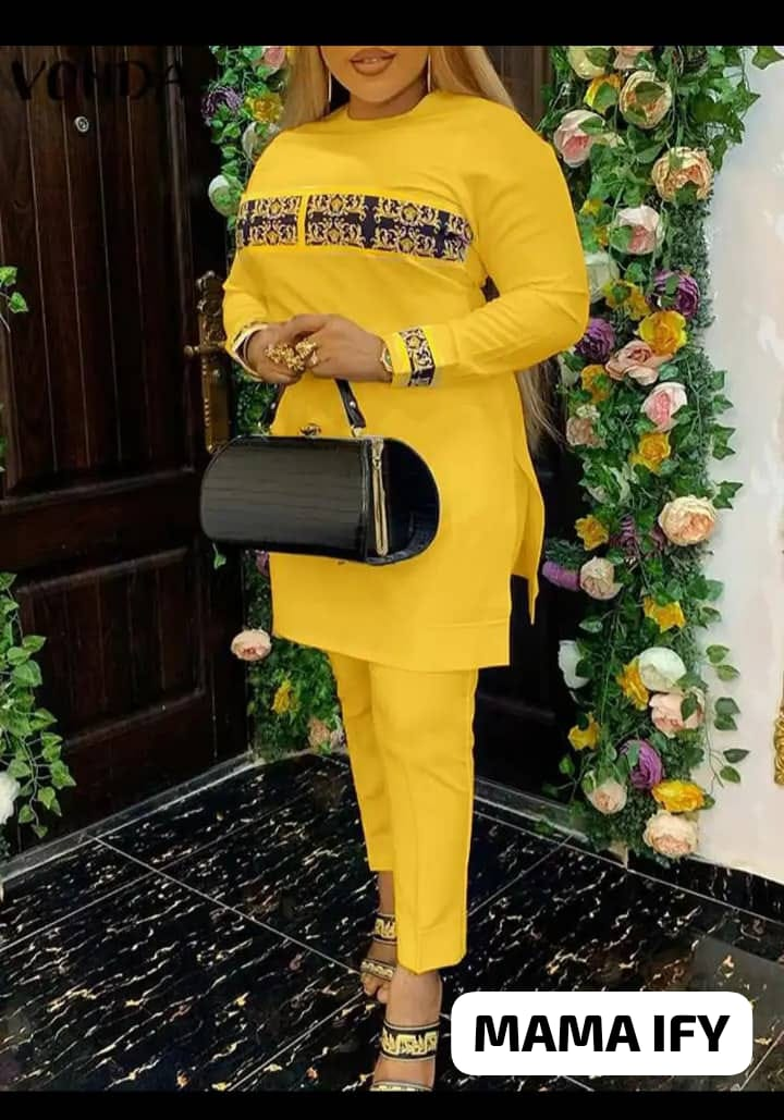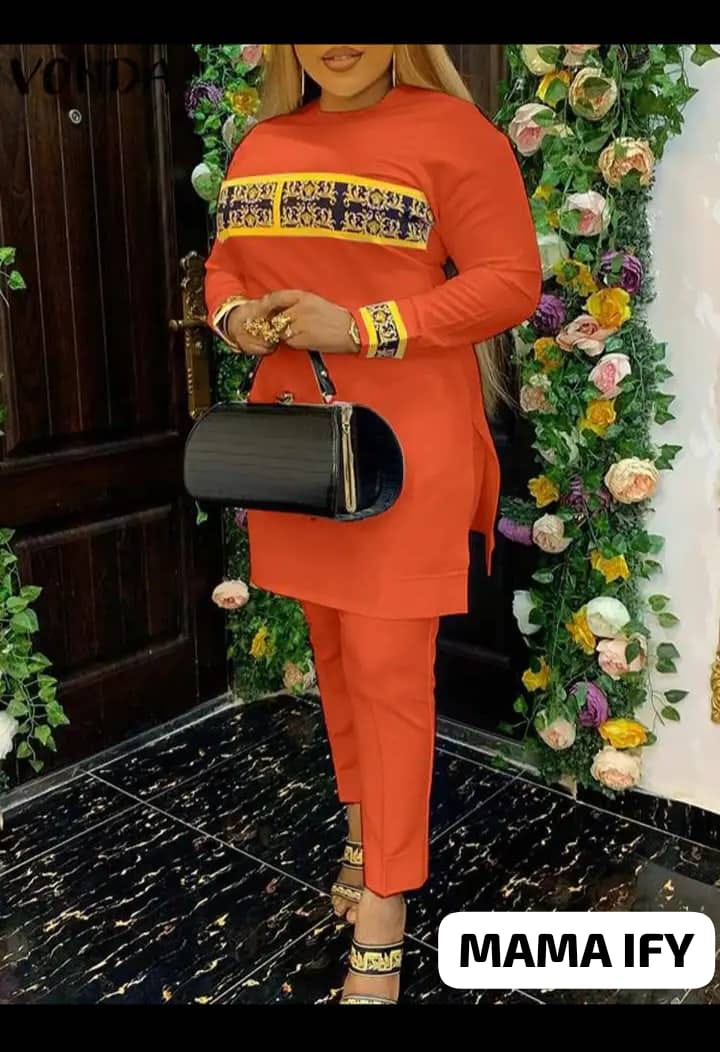 Step out in style with this vibrant and comfortable African print two-piece pant set. It features a long-sleeve top with beautiful ethnic patterns and matching pants. Perfect for any occasion, from casual outings to cultural events, this outfit is easy to wear and makes a bold fashion statement. Available in multiple eye-catching colors!