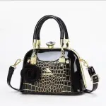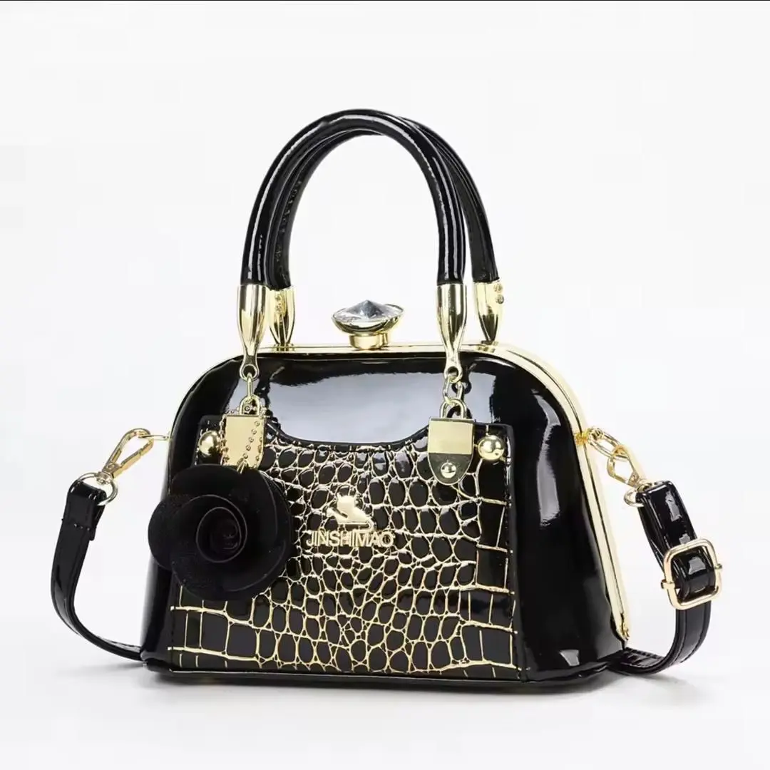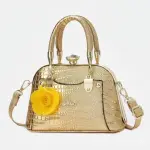 A stylish and sophisticated handbag featuring a chic crocodile texture and a decorative flower charm. Designed for the modern woman, it offers a spacious interior for daily essentials and comes with a comfortable handle and shoulder strap. Ideal for work, parties, or casual outings.