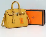 A stylish and durable leather handbag featuring a decorative padlock, top handles, and an adjustable shoulder strap. Ideal for office wear, parties, or daily outings.