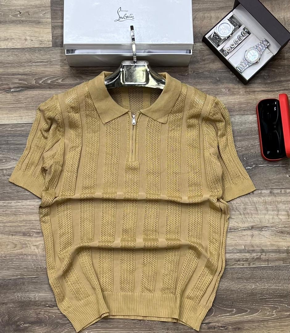 Stay cool and stylish with this comfortable knit polo shirt for men. Featuring a modern design with a zip-up collar, it's perfect for a casual day out or a relaxed evening. Available in different colors to match your style.