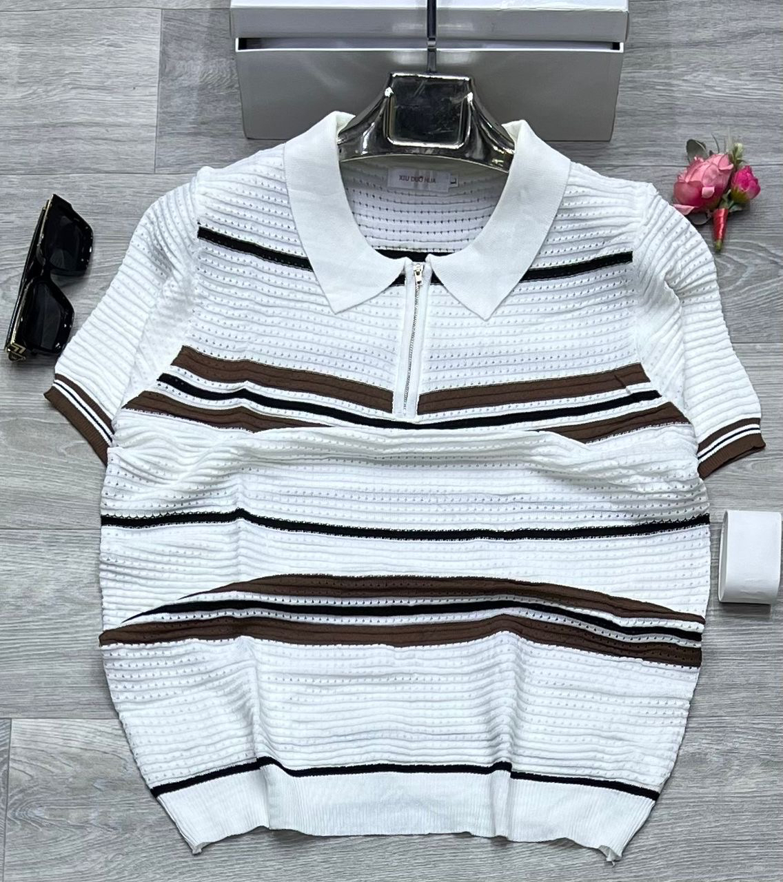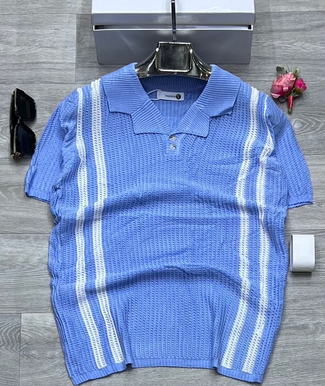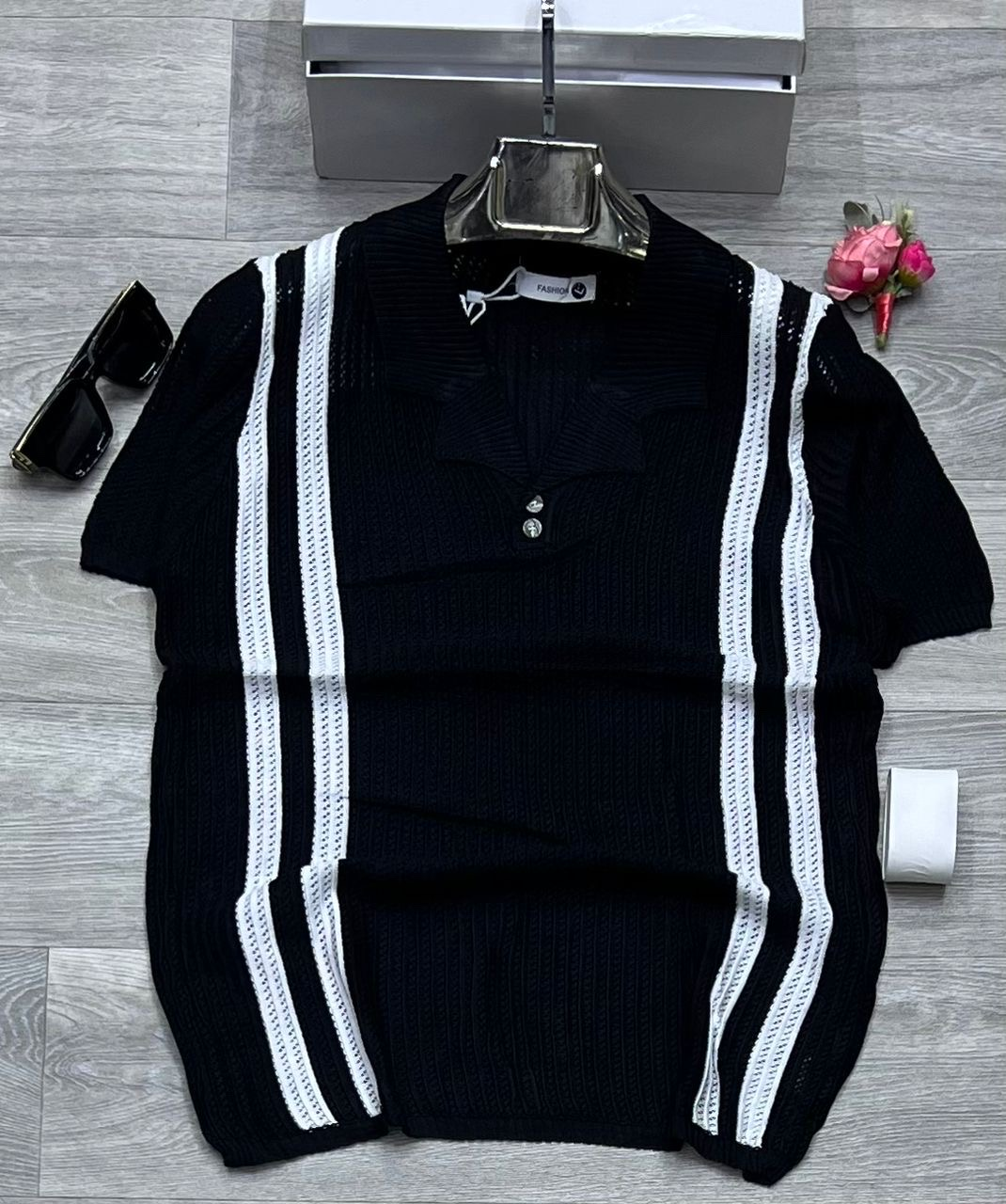 Upgrade your everyday style with this cool men's knit polo. It's great for looking sharp at casual events, going out with friends, or just relaxing. You'll love how comfortable it feels and its modern design. Find more polos, men's fashion, casual shirts, and striped tops on Wishmix.