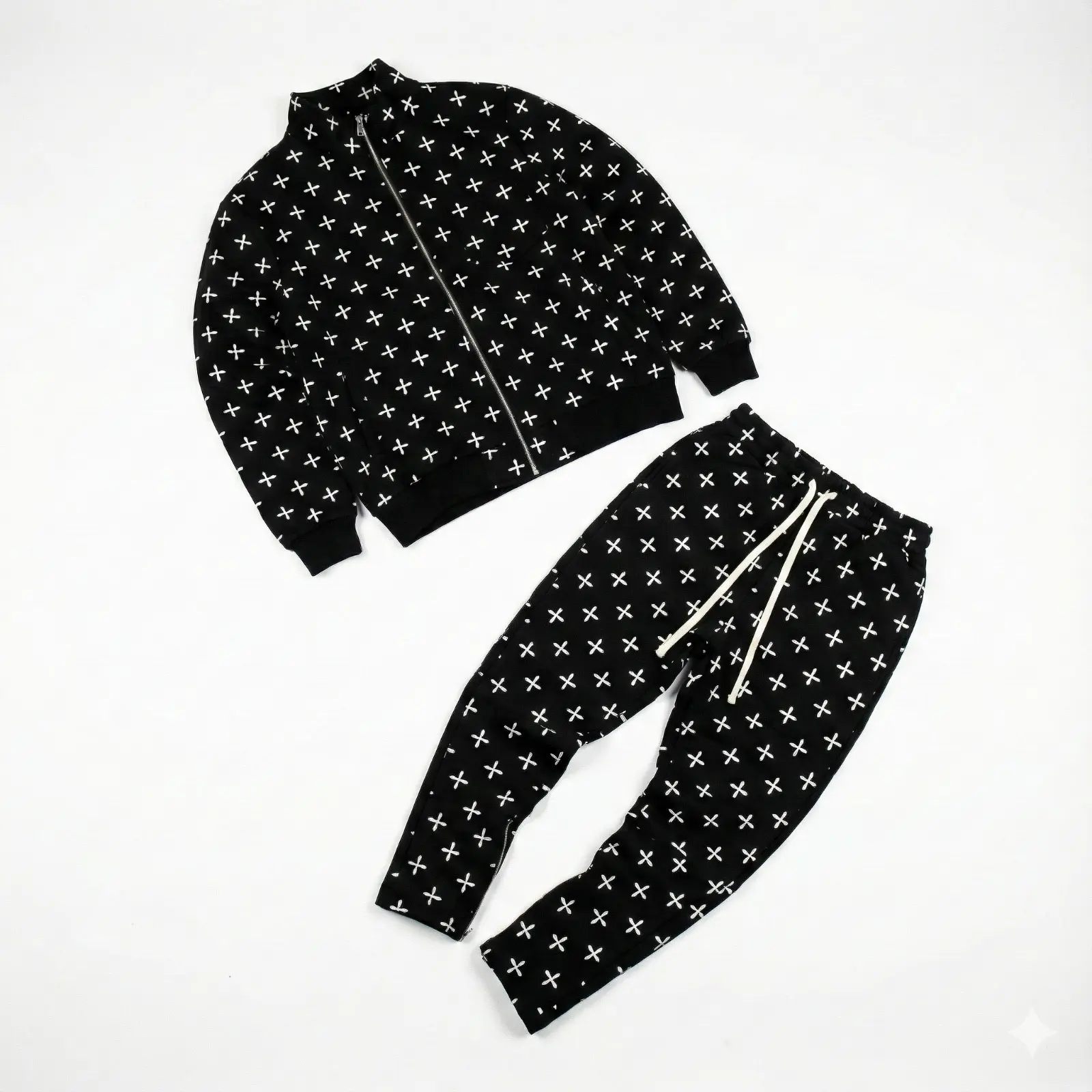 Upgrade your casual style with this two-piece patterned tracksuit. Featuring a full-zip jacket and matching joggers with an elastic drawstring waist, this set is designed for both comfort and a sharp look. The durable fabric ensures it stays in shape after every wash.