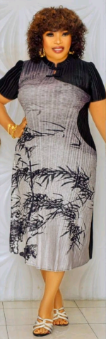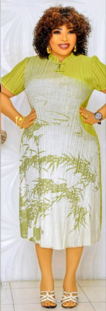Élégante Robe Midi Plissée Imprimé Bambou à Douala Cameroon