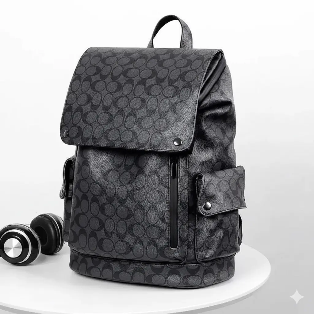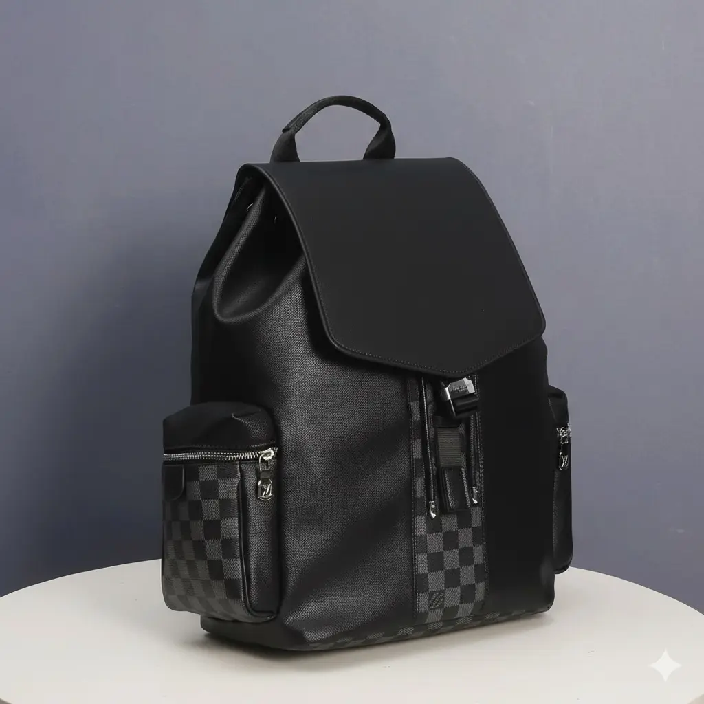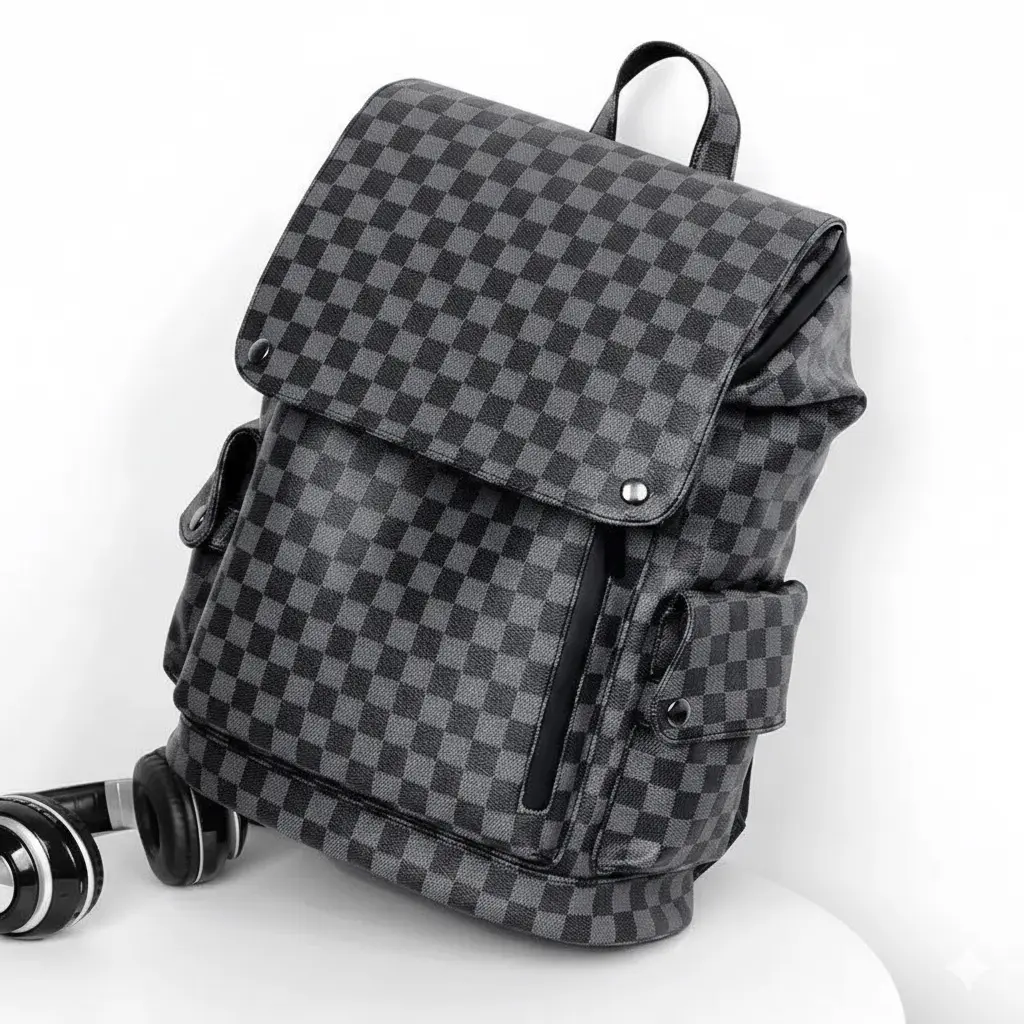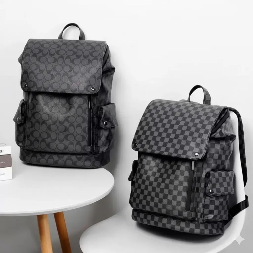 A high-quality leather backpack featuring iconic patterns. Built with a large laptop compartment, side pockets for your phone or keys, and reinforced straps for heavy loads. It includes a luggage strap on the back for easy travel. Durable, water-resistant, and very stylish.