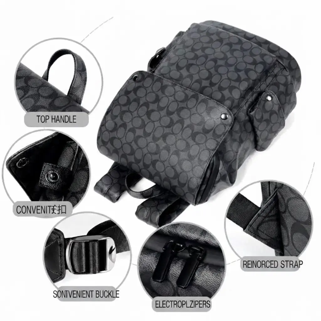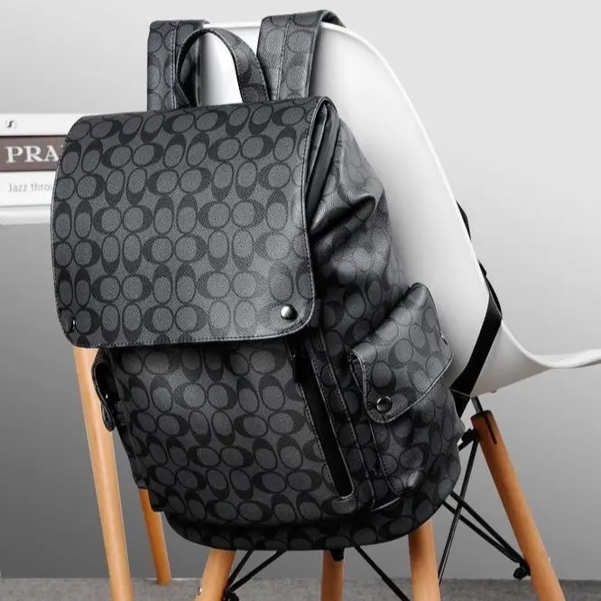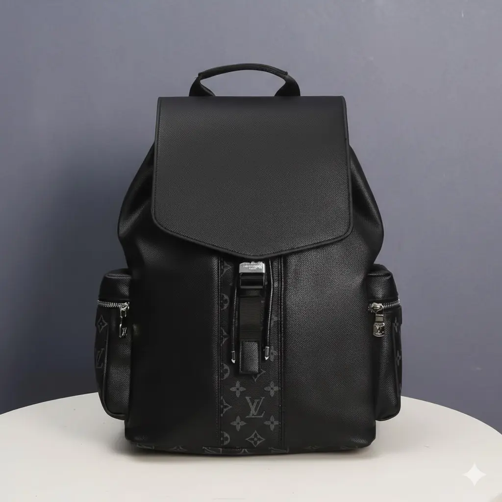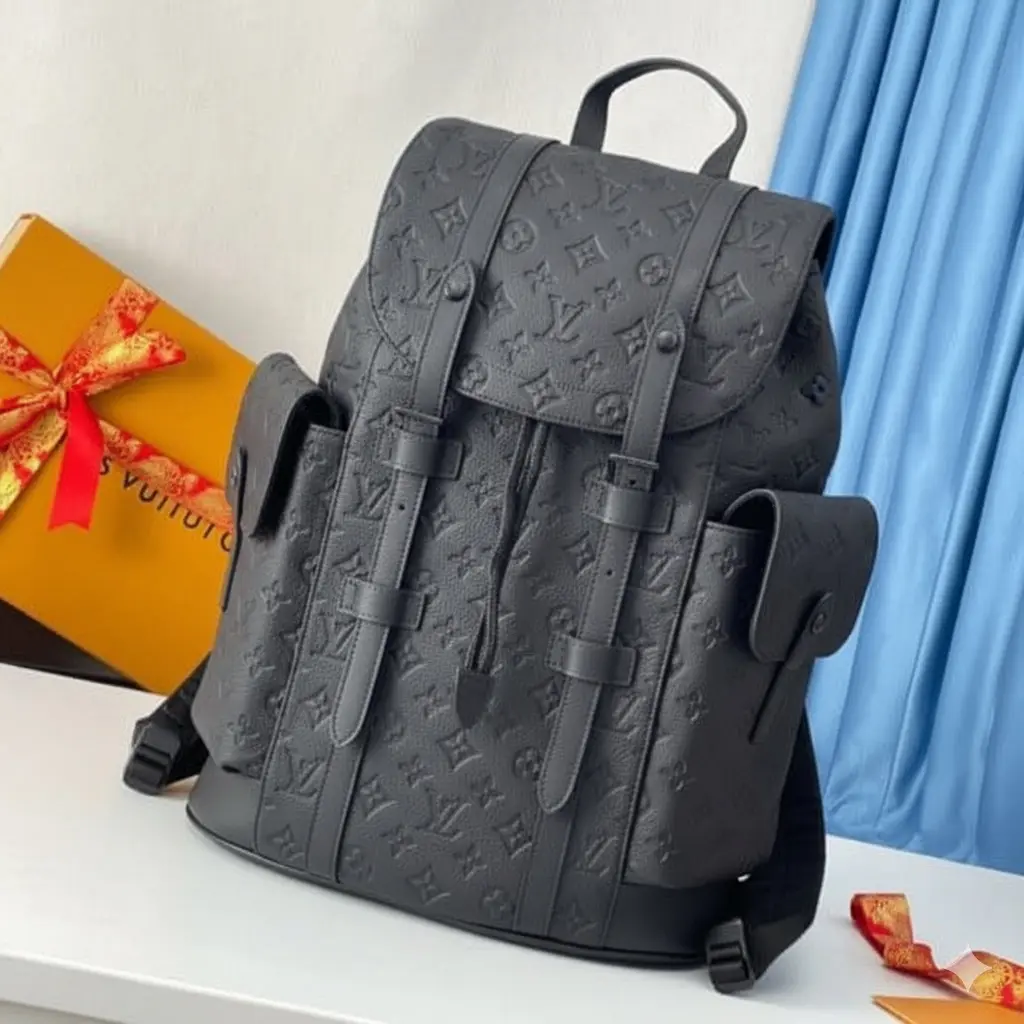 A high-quality leather backpack featuring iconic patterns. Built with a large laptop compartment, side pockets for your phone or keys, and reinforced straps for heavy loads. It includes a luggage strap on the back for easy travel. Durable, water-resistant, and very stylish.