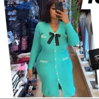 Step out in stunning style with this elegant long-sleeve ribbed knit midi dress. It features a flattering V-neckline, a stylish button-down front, and a chic bow detail that adds a touch of sophistication. This dress is perfect for outings, special occasions, or just a fashionable day out. It's comfortable, stylish, and designed to make you look and feel amazing. Available in beautiful colors to suit your taste!