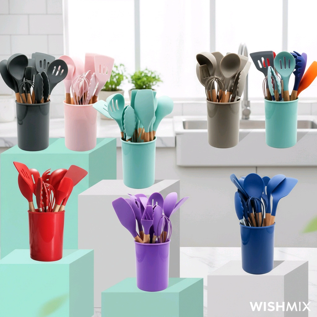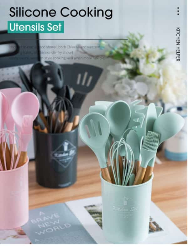 Silicone and Wood Kitchen Utensil Set in Douala Cameroon