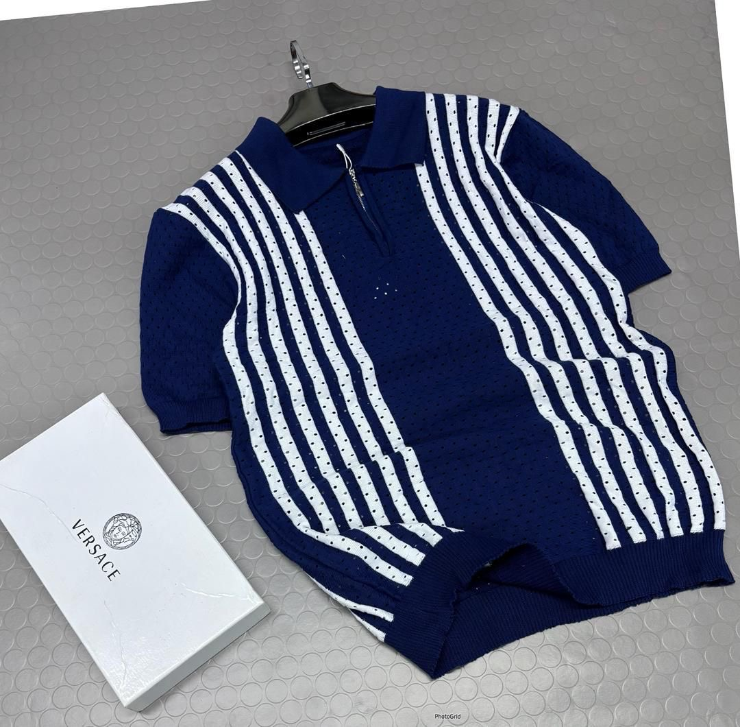 A stylish and comfortable short-sleeve polo shirt featuring a modern zip collar and classic vertical stripes. Made with breathable fabric, it is ideal for casual outings and everyday wear in warm weather.